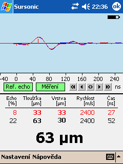 | Princip měření: | měření doby průběhu ultrazvukového impulsu vrstvou |